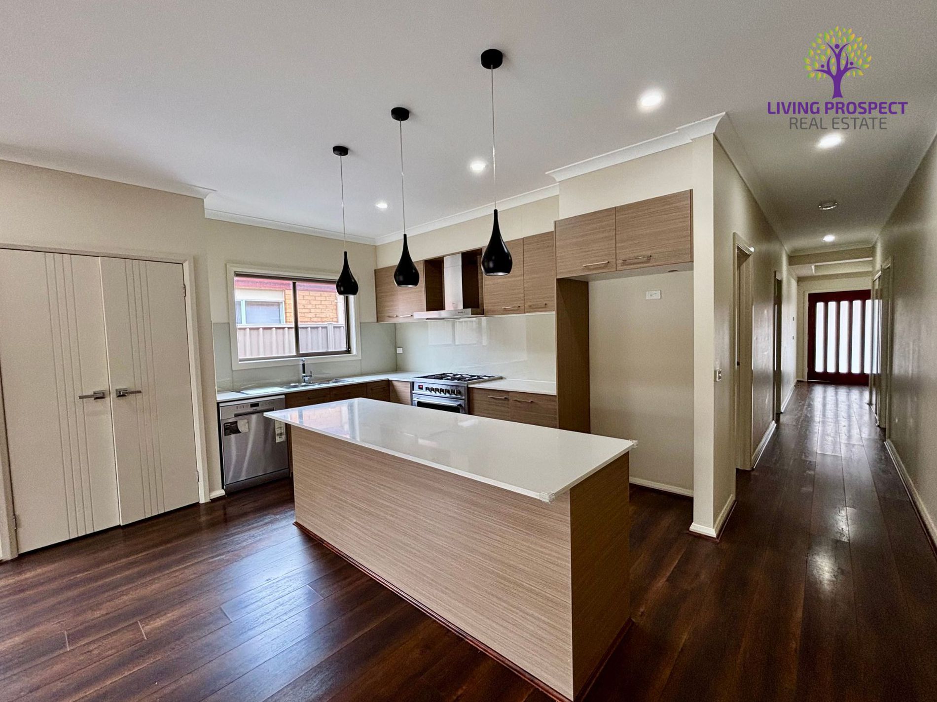 A front lounge provides a separate living space, complemented by an open-plan kitchen, meals and family area with dishwasher and quality finishes.